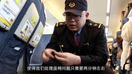 在动车组全程运行过程中,机械师刘烨华始终坚守岗位、按照作业标准,每两小时就要对车厢内的53个关键部位、98处设施设备开展巡检。除了完成这些常规的巡检作业,刘烨华还要随时待命,及时应对旅途中可能出现的各类突发情况。